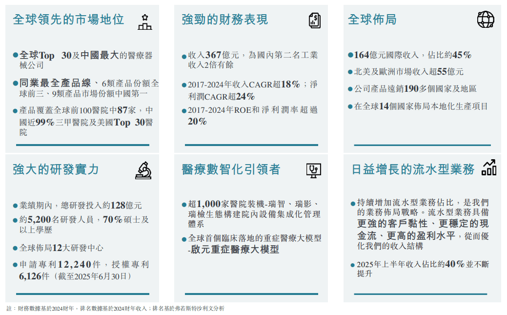 据招股书,迈瑞医疗是环球领先、更始驱动的全邦级医疗东西企业及医疗数智化引颈者。遵循弗若斯特沙利文的原料,正在中邦医疗东西行业,公司2024年的市值周围凌驾境内闭键龙头企业(第二到五名)之和,工业收入是第二名的两倍足够。